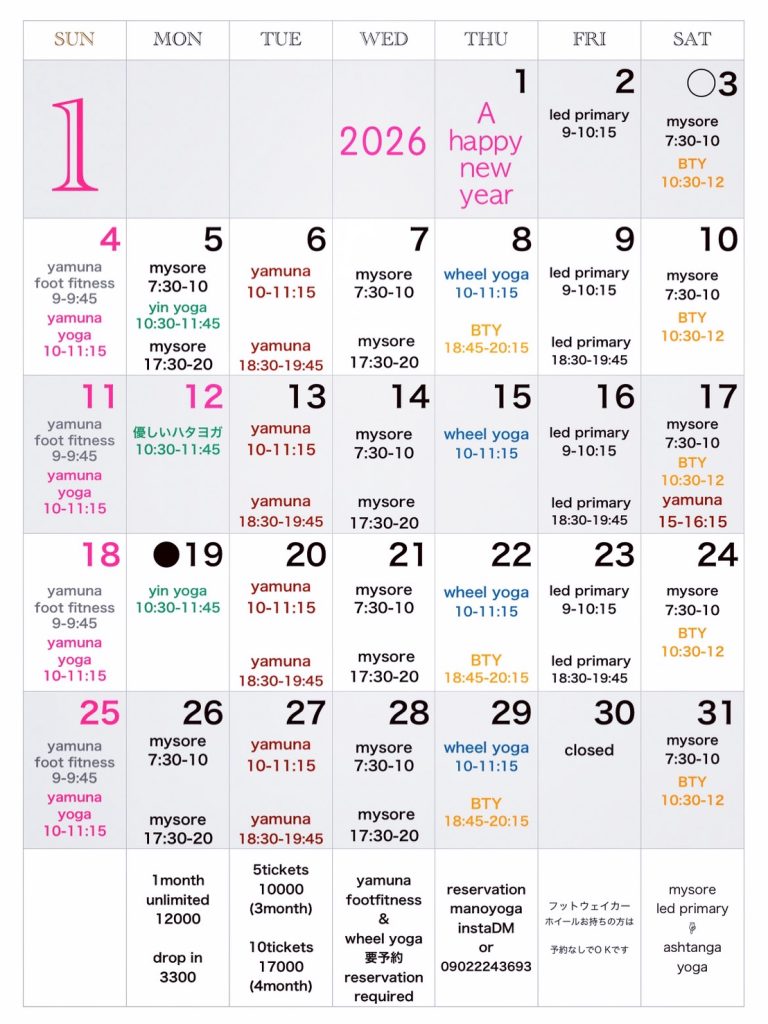 【2026/1】スタジオスケジュール